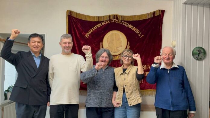 The meeting was attended by Vincent Mathieu, Chairman of the Communist Party of Belgium; Jozef Bossuyt, International Secretary; and Yannick Vanonckelen, a member of the Political Bureau, with a female activist also in attendance.