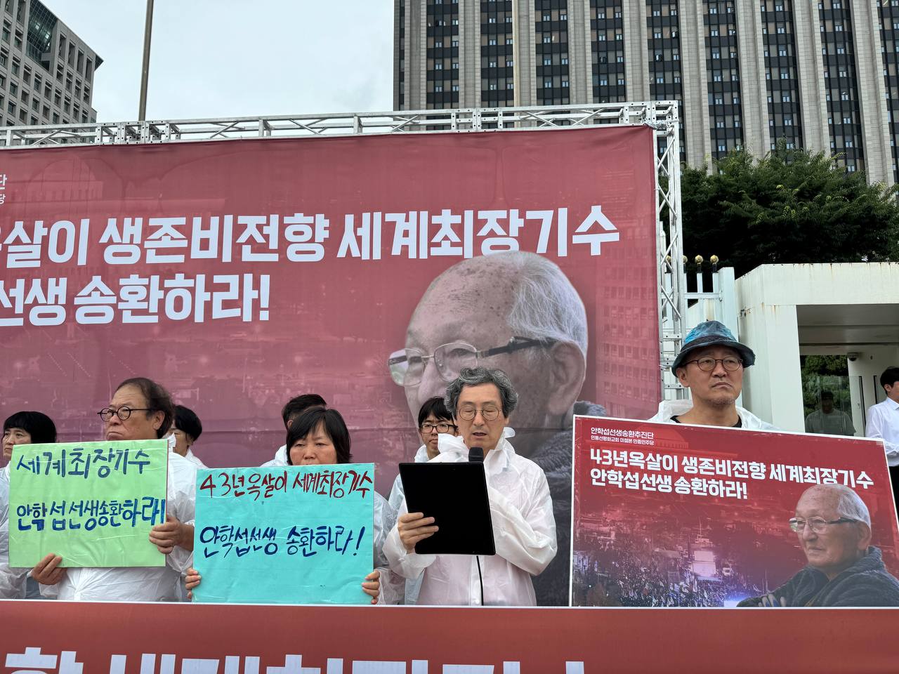 We stand here today with solemn responsibility and an urgent appeal. An Hak-sup—who spent half his life imprisoned and the other half as the world’s longest-surviving unconverted political prisoner—is now waging the final battle of his life. At 96 years old, his health has deteriorated rapidly due to pulmonary edema.